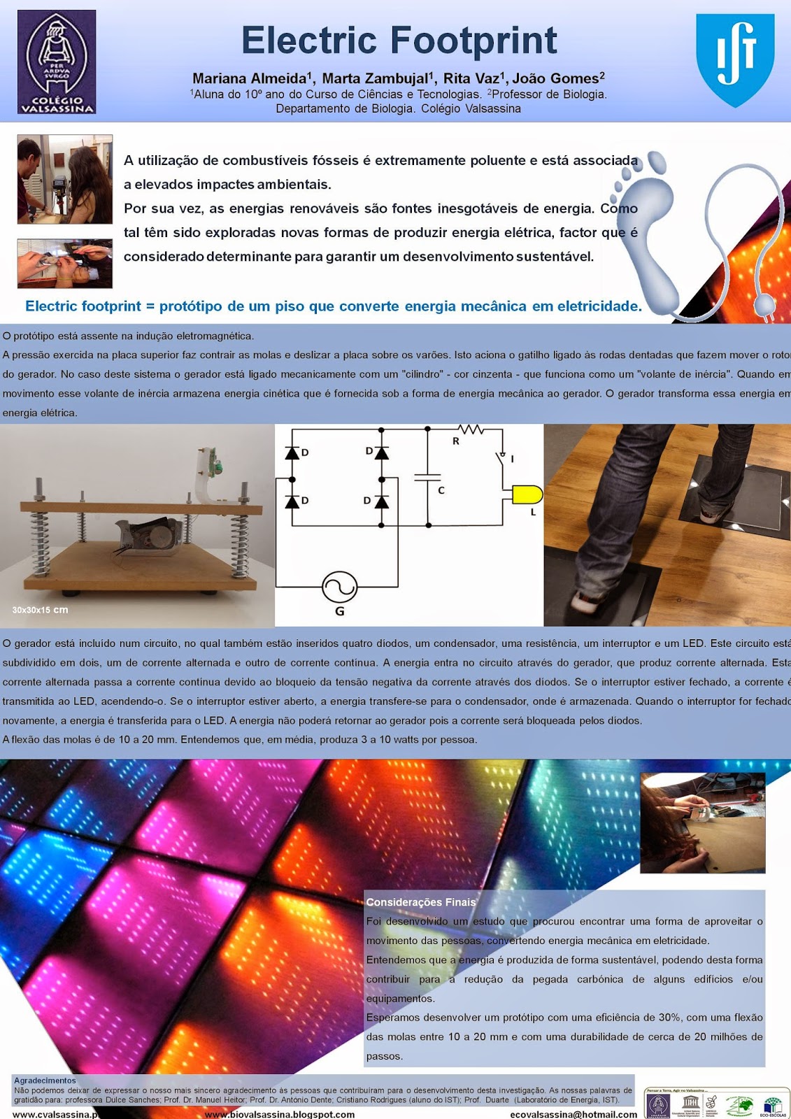 - Footlys - Aplicação de lisinas na eliminação da bromidrose verificada nos sapatos, da autoria de: Mário Gil (11º1A) Oliveira e Martim Nabais (11º1A).